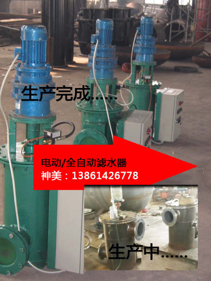 全自动滤水器由神美公司生产具有对原水进行过滤并自动对滤芯进行清洗排污的功能,且清洗排污时系统不间断供水。该设备与以往的过滤器相比具有自动化程度高,处理量大,可自行清洗排污,并不间断供水,应用面广泛等优点。
