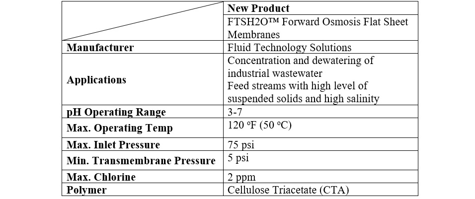Sterlitech正在推出Fluid Technology Solutions的平板膜,以扩展我们的正向渗透膜产品系列。 FTSH2O™平板膜由低污染的三乙酸纤维素(CTA)材料构成。 它们还具有能够反洗以恢复膜性能的益处。
