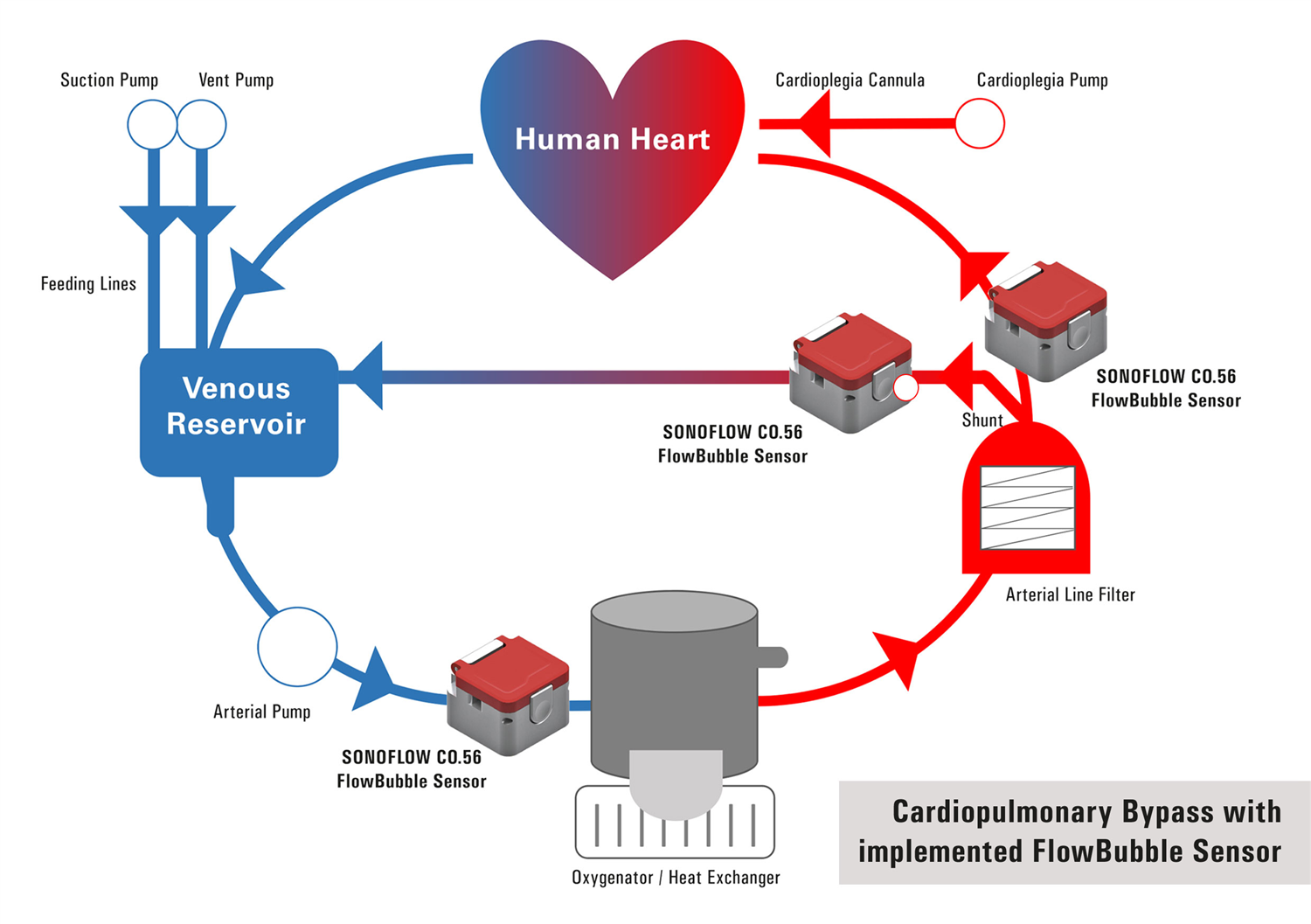 SONOFLOW CO.56复合流量气泡传感器系列被成功设计到心肺机原始设备生产厂商的应用中