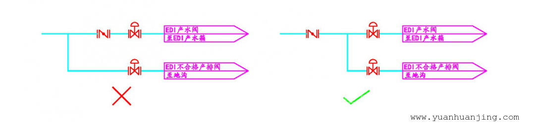 PS:不合格产排管道需与产水一样受调节阀控制流量,否则产排时可能导致浓水与极水流量下降造成隐患。
