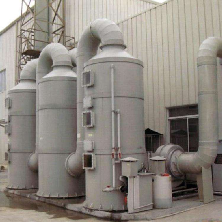 通过风管将油雾废气引入净化塔。通过填料层后,油雾与水雾液体充分接触,80%以上的油雾净化溶放水中后,油雾净化后的废气经板脱水除去,再由风机排放到大气中。在塔底用水泵将水打到塔顶喷淋而下,然后再循环到塔底又由水泵打到塔顶进行下一个循环。