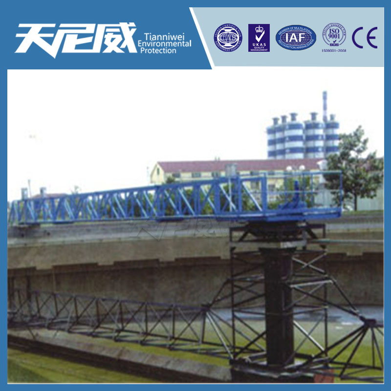 | 周边传动刮泥机 | 驱动机构、主梁、中心旋转支座、导流筒、刮泥系统、排渣斗及冲洗机构、铰接式刮渣耙、撇渣板、撇渣斗、出水三角沿板、浮渣挡板、控制箱 | 利用液位差自吸式排泥,有浮渣刮集排除装置和过载保护装置;根据用户要求控制系统可与微机联网。 |