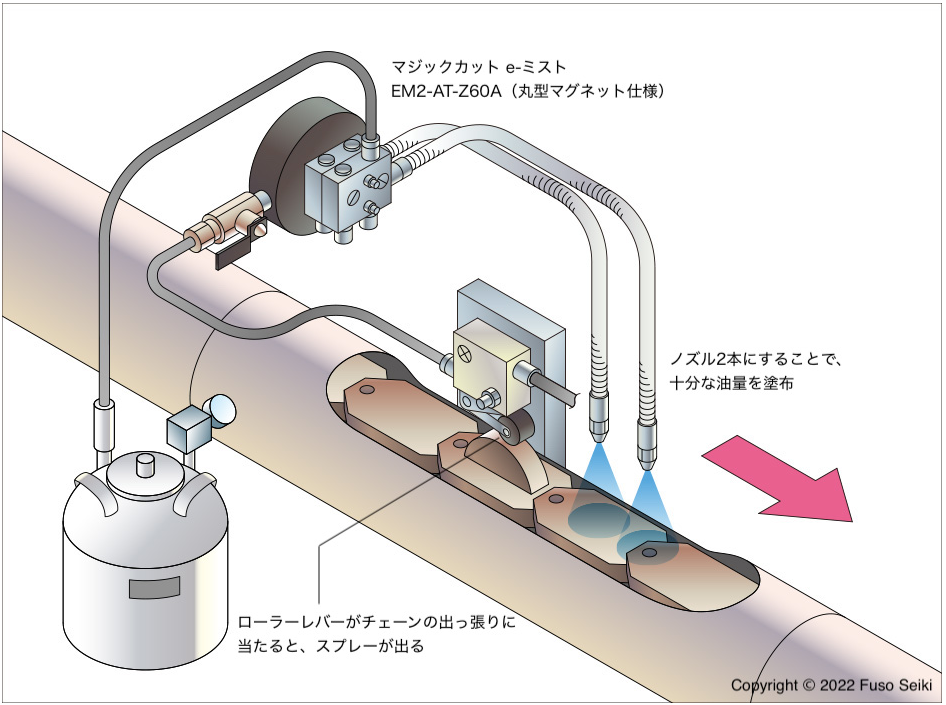过去,工人手动给链条加油,但忘记加油往往导致油用完,