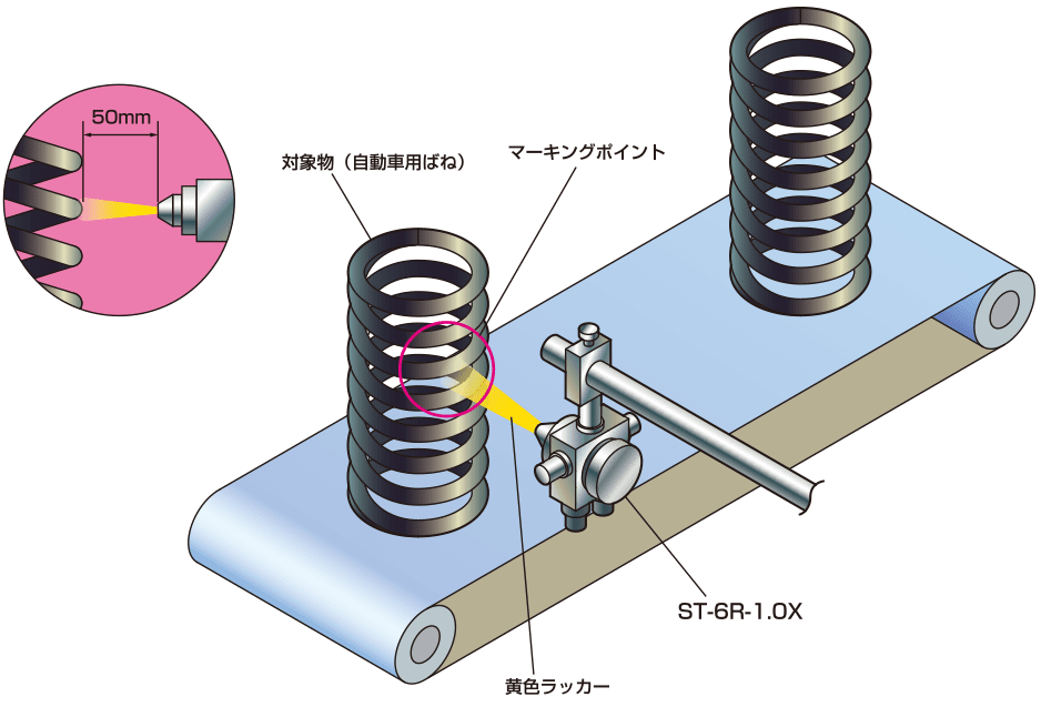 这家弹簧制造商生产汽车弹簧。过去,我们使用另一家公司的自动喷枪,并用