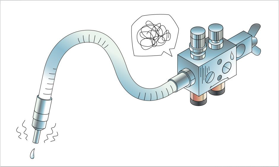 在乳液基水溶性切削液的情况下,液体本身可能是坏的。切削液的成分分离并在空气喷嘴内形成一层薄膜(是否发生分离取决