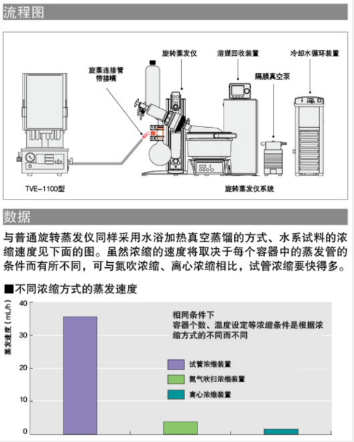 3、 容器加热采用水浴加热方式,通过温水浴加热系统加热,热传导效率高,可以与普通旋转蒸发仪的浓缩速度相近。