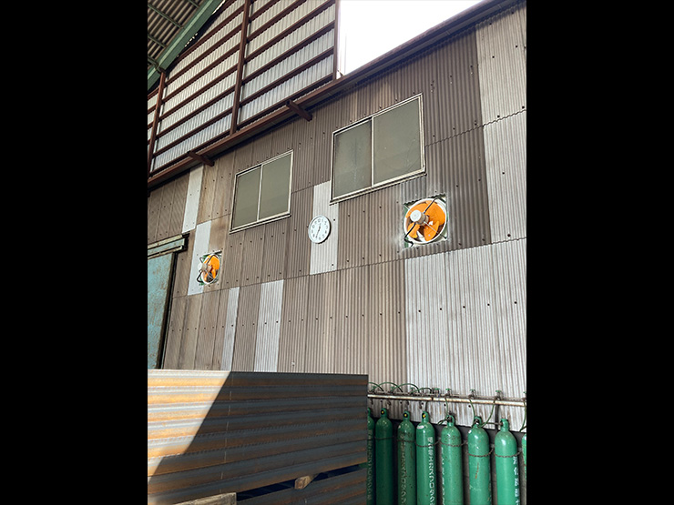 在钢结构的制造中,焊接工作主要在工厂进行,但由于通风系统不工作,焊接烟雾被困在工厂内,因此我们希望对其进行改进,以改善员工的健康管理。 除了《特定化学物质危害预防条例》外,我们还想采取措施遵守夏季的工厂通风。