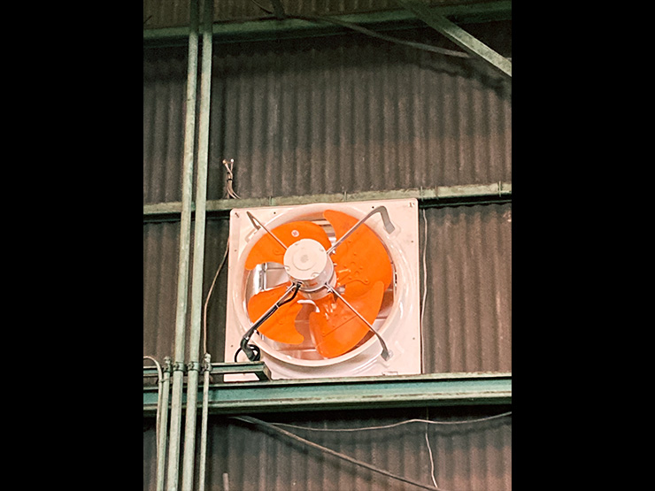 采用压力-压力通风风扇,改善了工厂内滞留的烟雾的释放,改善了夏季炎热的环境,并且由于安装在高位置,干扰焊接工作的风流不会影响工件,因此。