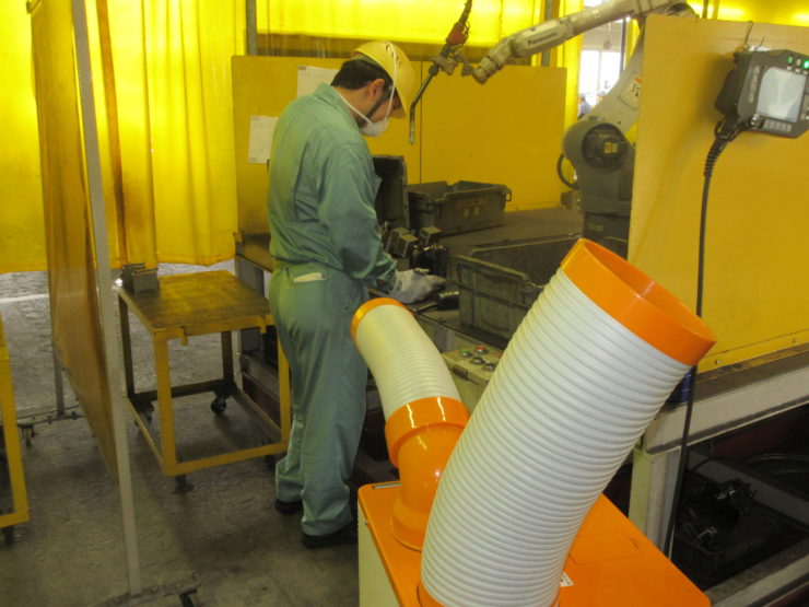 江崎中部地区办事处分享日本SUIDEN瑞电 车间焊接散热移动冷风机 解决方案