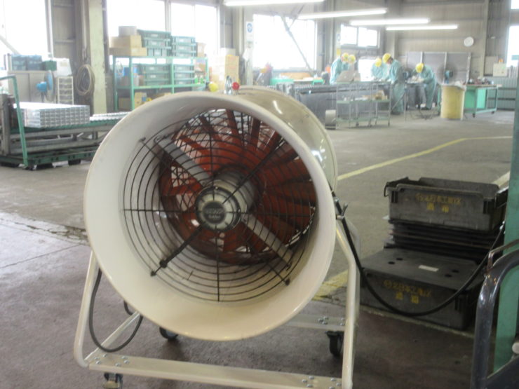 我们提出,在工厂安装“Dodeka Fan”作为空气循环和吸气排气设备的有效手段,并安装“Cool Sui Fan”作为焊接工作手段。