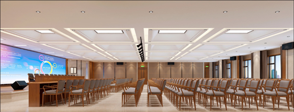 多功能会议室的音响效果需满足国家厅堂扩声系统设计的声学特性指标标准。在配合建筑声学的基础上,一般还需要通过使用扩声设备进行音效补偿,主要实现音频信号的还原、放大、多媒体显示等。