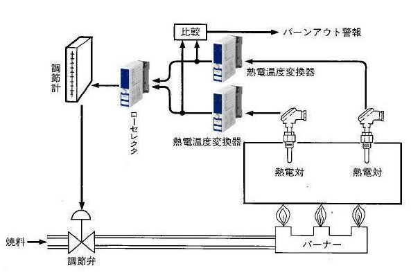 热电温度转换器的烧毁是向上指定的,较低的一个是从两个信号调理器的输出中选择一个低选择器。