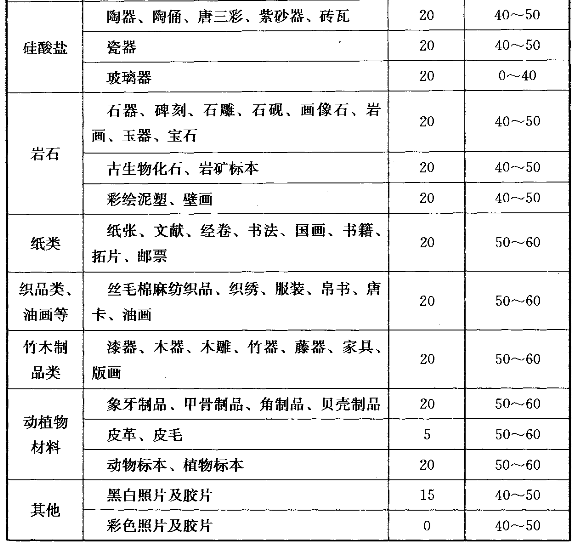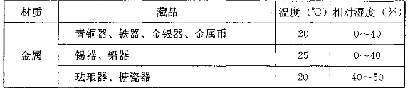 在《博物馆建筑设计规范》中,对比了不同材质的文物保存的适宜温湿度: