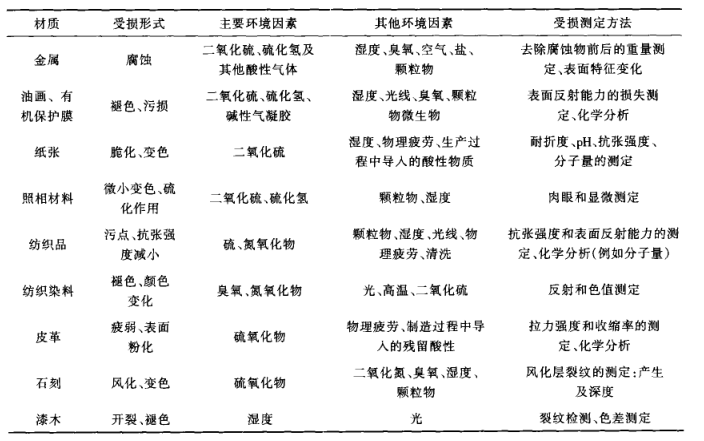 颗粒性物质能吸附污染气体,因此它含有广泛的对文物有损伤的污染物。其性质组成随地区、颗粒大小而有不同。城市中的粒状污染物大约5% 一 20%是含有硫酸或是硫酸盐的颗粒,这些会使织 物、石、建筑等受污损[2]。