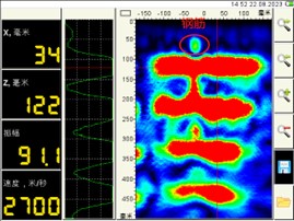 通过阵列超声设备,能够清晰识别钢筋的位置和混凝土的真实厚度。检测结果显示,钢筋的位置和混凝土的厚度信息准确无误。