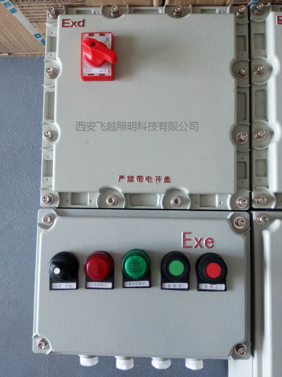 适用油罐区 或冷却塔等炼化厂区,高底位液位无人控制的防爆区域,采用施耐德元件控制。可靠性更高。液位可视性。手/自动双重控制。双保险,是防爆自动化控制的理想控制箱,防爆等级ExdeIIBT6Gb IP65 防雨防水防爆。西安飞越陕西人自已家门口的防爆制造商,欢迎你咨询: