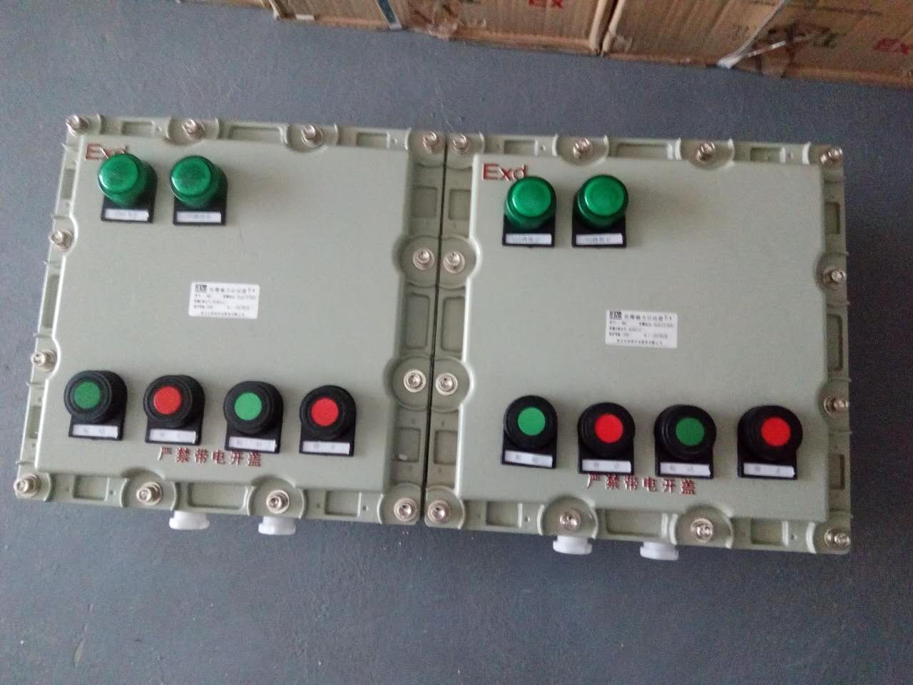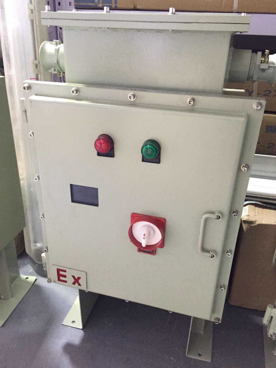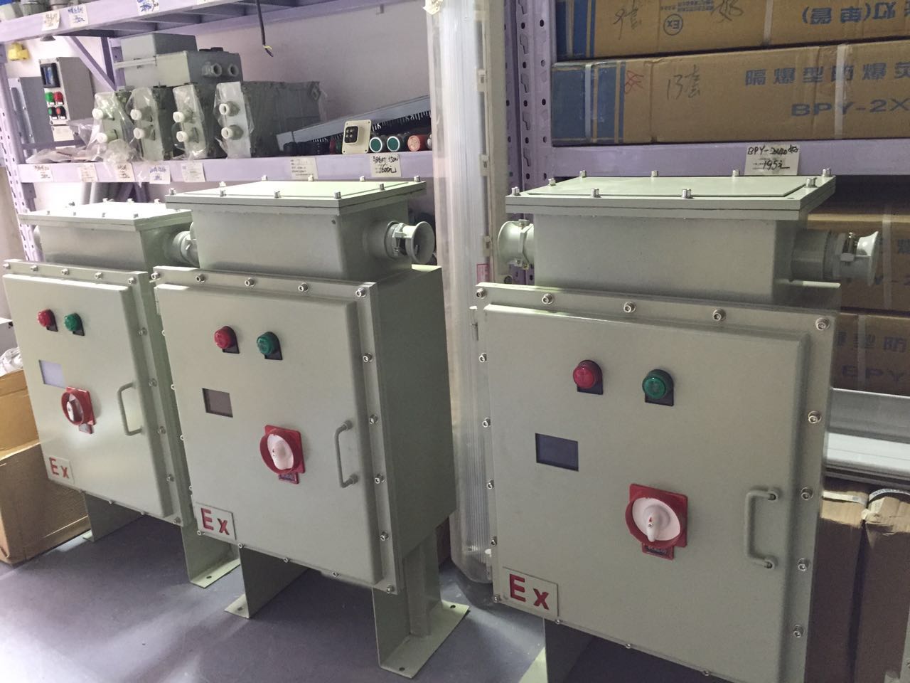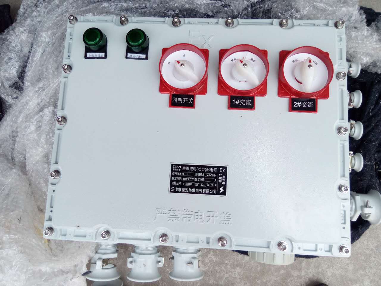 BXD68防爆动力配电箱(电磁起动)技术参数: 执行标准:GB3836.1-2000,GB3836.2-2000,GB3836.3-2000 防护等级:IP55 防腐等级:WF1 使用类别:AC-3,AC-4 额定电压:220V/380V(如有特殊要求请注明) 额定电流:10A 进线口螺纹:G1″(如有特殊要求请注明) 电缆外径:Φ12mm~Φ17mm1.防爆控制箱外壳采用ZL102铝合金压铸或钢板焊接成型,表面高压静电喷塑,配不锈钢外露紧固件,产品外形美观。 2.防爆控制箱设计精良,安全易用,我公司免费提供一年保修 3.箱体图纸可由贵公司提供,或由我公司代为制作. 4.防爆照明动力配电箱采用复合型,模块结构,各回路可根据需要自由组装,一般开关箱采用隔爆型结构,母线箱及出线箱采用增安型结构. 5.内装元件可根据用户要求安装高分断路器或塑壳式断路器。如DZ47、C65、CM1等。 6.可根据客户要求特制,如加装电涌保护器、电流表、电压表等,外可配挂锁金属手柄。 7. 适用于照明和动力线路,具有分断、过载、失压保护和短路自动切断功能 钢管或电缆布线均可. 8.符合GB3836-2000,IEC60079标准要求。