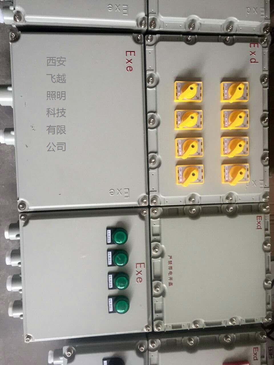 西安城市电热公司天燃气锅炉车间使用,防爆一级控制动力箱,二级防爆动力箱,主要完成锅炉车间增压泵,循环泵,补水泵,燃烧机和锅炉间照明等要求而设计制做产品,产品使用三相五线制方式,满足车间动力照明用电要求,产品防爆等级高ExdeIIBT6Gb ExtD 配备防爆管件和防爆照明开关类附件,高的满足生产要求,