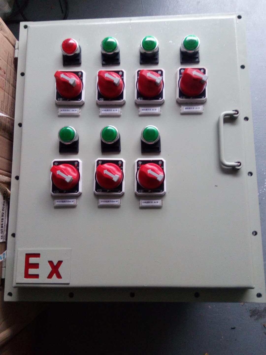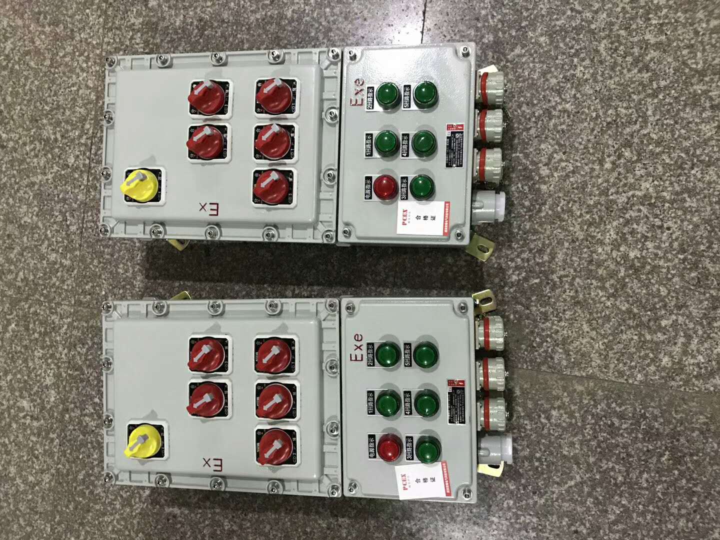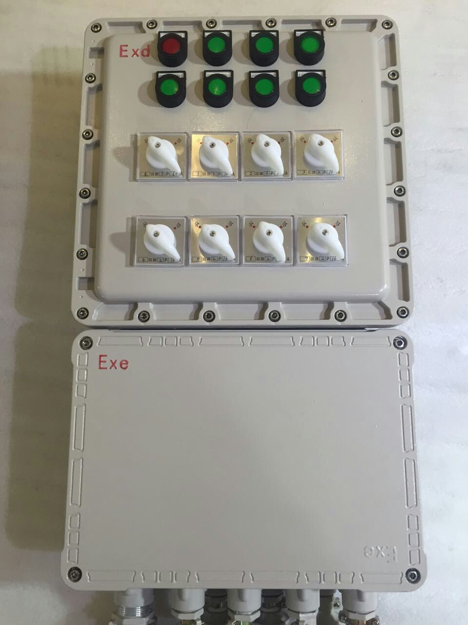 2. 增安型外壳,母块结构可根据用户需要,随意组装,内装防爆指示灯、电流表、电压表、按钮及转换开关等;