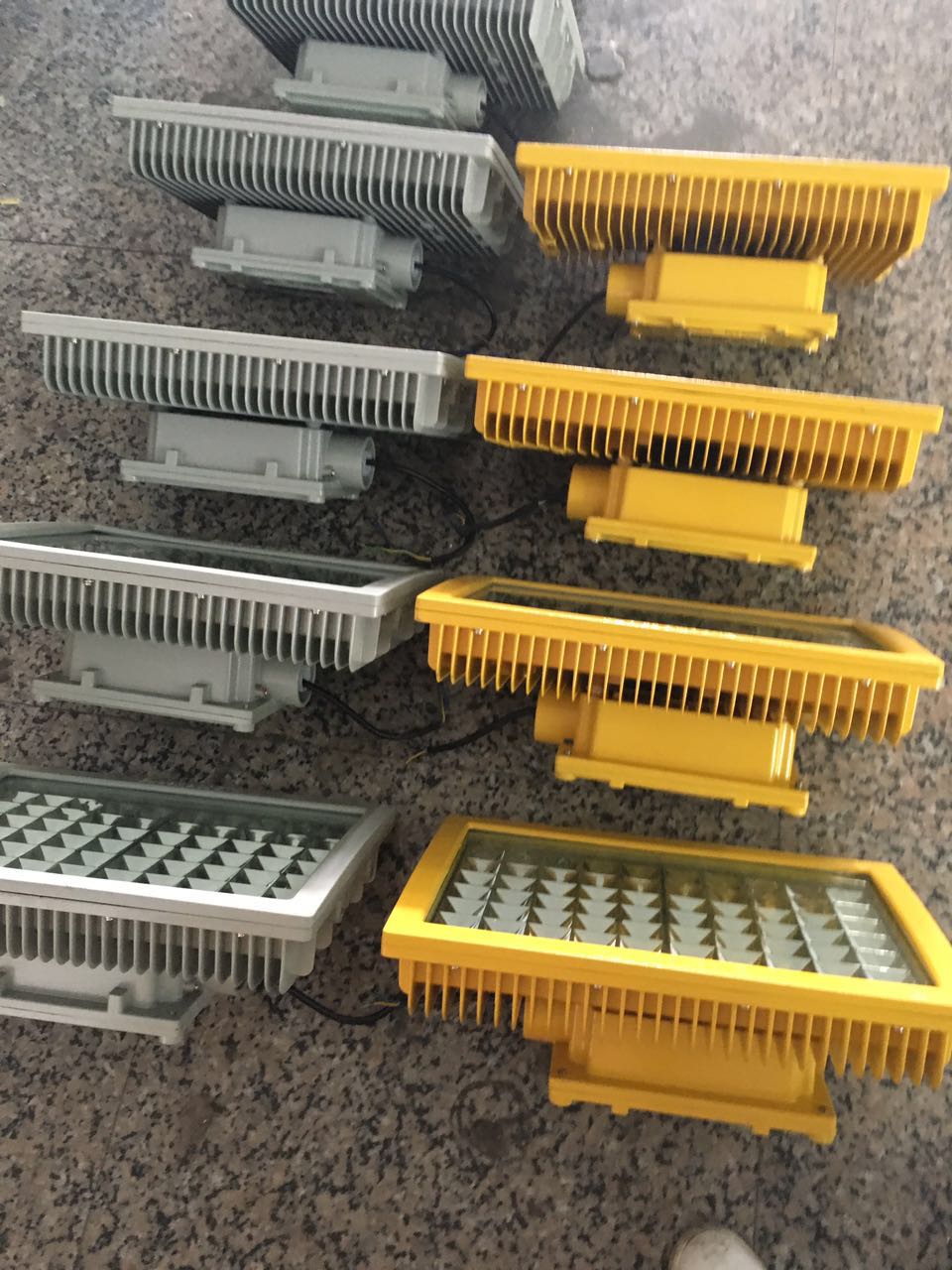 防爆灯外壳采用铝合金高压铸造成型,表面经抛丸后高压静电喷塑,有效提高了壳体的散热性能;电路基板紧贴铝合金壳体,可将点热源瞬间转换为面热源,散热面积成倍增加,利于热量迅速分散,提高散热效率;壳体表面具有气流分散沟槽,借助空气流动带走热量;散热鳍片密度高,大大提高散热面积,充分保证LED的散热要求,使用寿命更长。