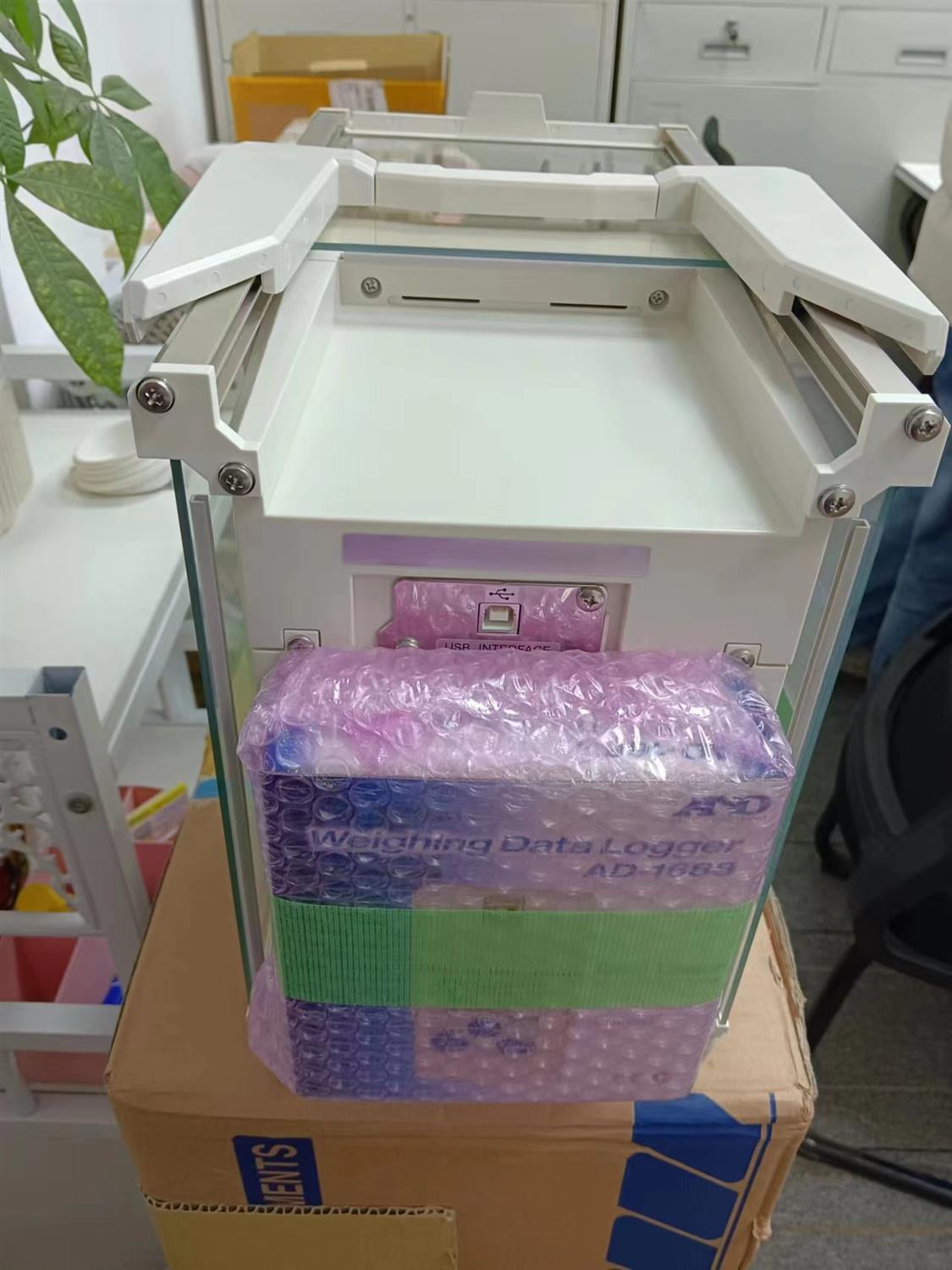 测试。 内置砝码用于检查称重的准确性并输出结果。