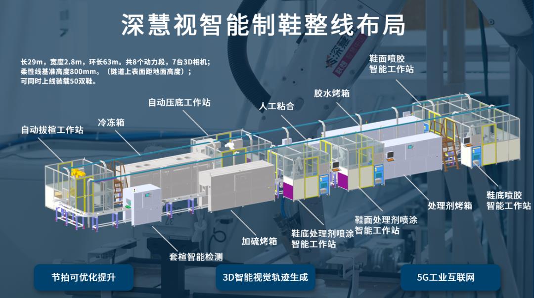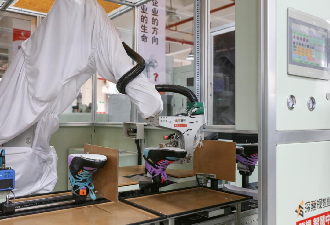 深慧视以智慧视觉服务产业创新,利用自研的3D视觉技术与制鞋行业深度融合,成功推出成型制鞋智能线,解决了制鞋行业柔性生产的难题。