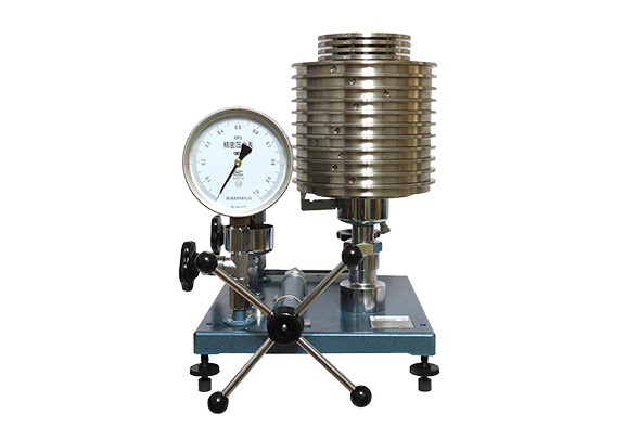 3、旋转手摇泵的手轮,检查油路是否畅通若有问题则应首先排除,直到油路畅通之后方可装上被检压力表(检氧压表应将油水隔离器装上。