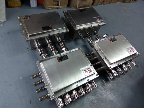 不锈钢防爆箱可按用户要求制做成,采用316不锈钢焊接而成,防爆控制箱,箱内可装仪表,触摸屏,各类模块,断路器,等工控电器元件;也可按用户使用要求做成防爆配电箱装,内可装各电流等级的开关的接线箱,内置进口或国产接线端子或铜排,进出线口按用电缆要求,可设计为铠装电缆接头,防爆插销等方式。箱体可做成ExdIICT4Gb或ExdIIBT4Gb,ExtD,Exe等防爆等级。柜、箱可做成立式,挂式。公司技术*,质量可靠,欢迎有需求用户!