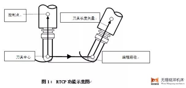 RTCP是Rotation Around Tool Center Point的英文缩写,即图1中刀具中心点编程。启用RTCP,控制系统会自动计算并保持刀具中心始终在编程的XYZ位置上,刀具中心始终在编程坐标系中,转动坐标每个运动都会被编程坐标系XYZ的直线位移所补偿。使用RTCP,可以直接编程刀具中心的轨迹,而不用考虑五轴机床结构参数,大大简化了五轴工艺编程和提高了加精度。