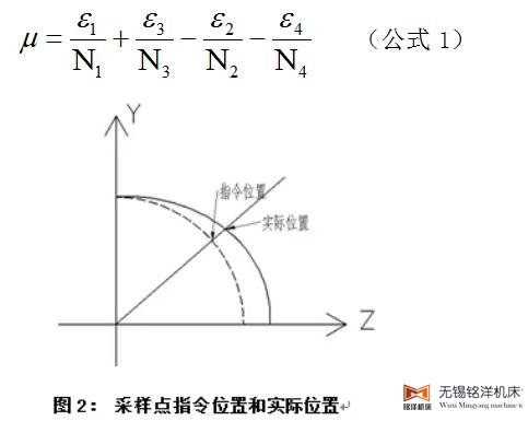 在旋转路径所在的象限中选取若干机床实际坐标采样点,计算每个采样点实际位置和指令位置之间的误差值(图2),根据每一象限误差总和