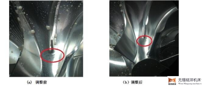 (1)调整前大叶片背面底部有明显的过切痕迹,调整后过切痕迹消失,表面光滑,见图9。