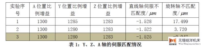Y、Z、A轴伺服匹配见表1。