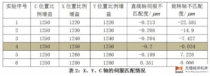 C轴测定条件下,匹配情况时,C轴、X轴和Y轴的位置比例增益分别为:C1280,X1280,Y1280。