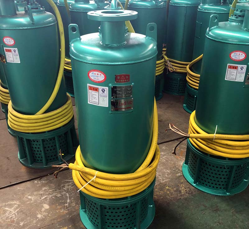 BQS矿用防爆潜水泵分为2种结构:一种为中吸式潜水泵,吸水口位于水泵中间部分,在顶部出口排水,适用于清水及含有少量污水的使用环境。另一种为下吸式潜水泵,吸水口在水泵底部,排水泵也位于水泵底部,大流道的叶轮设计能有效的排出含有污水颗粒的介质。潜水泵可以直接潜入水中工作,不必建造泵房,既安装简单,又节省了成本。