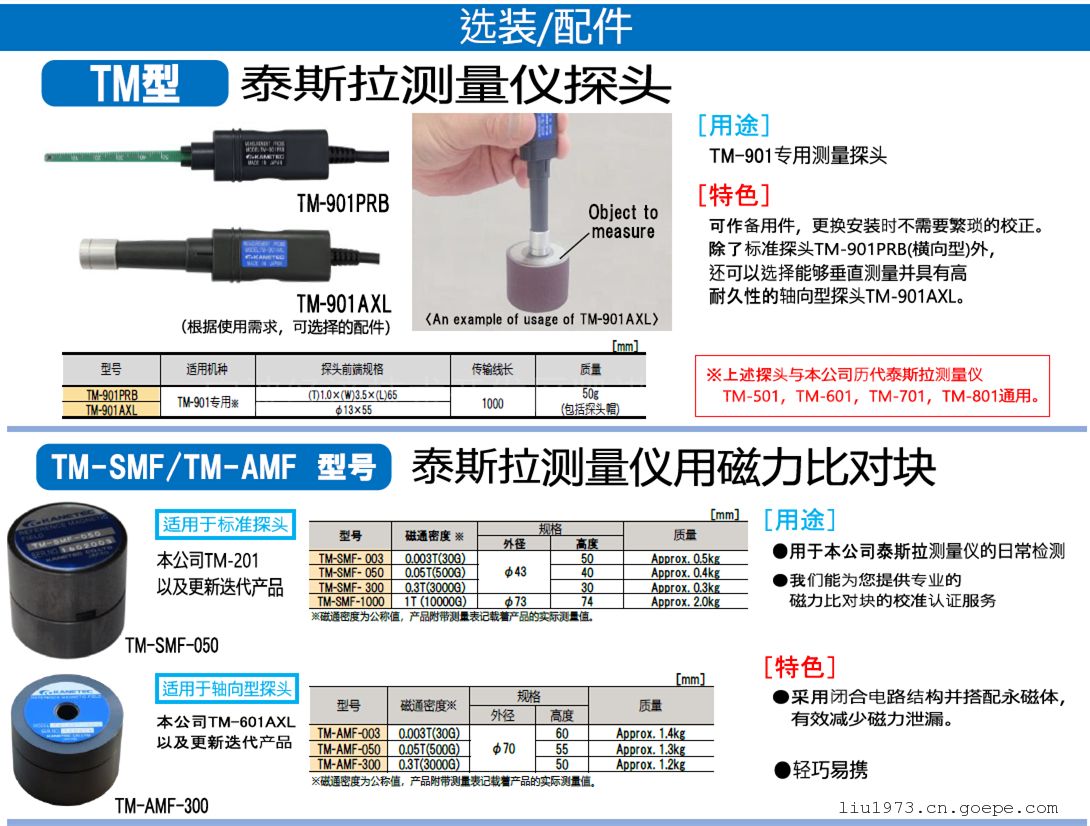 5.新款探头TM-901PRB和TM-901AXL与强力历代泰斯拉测量仪(TM-501、TM-601、TM-701、TM-801)兼容。