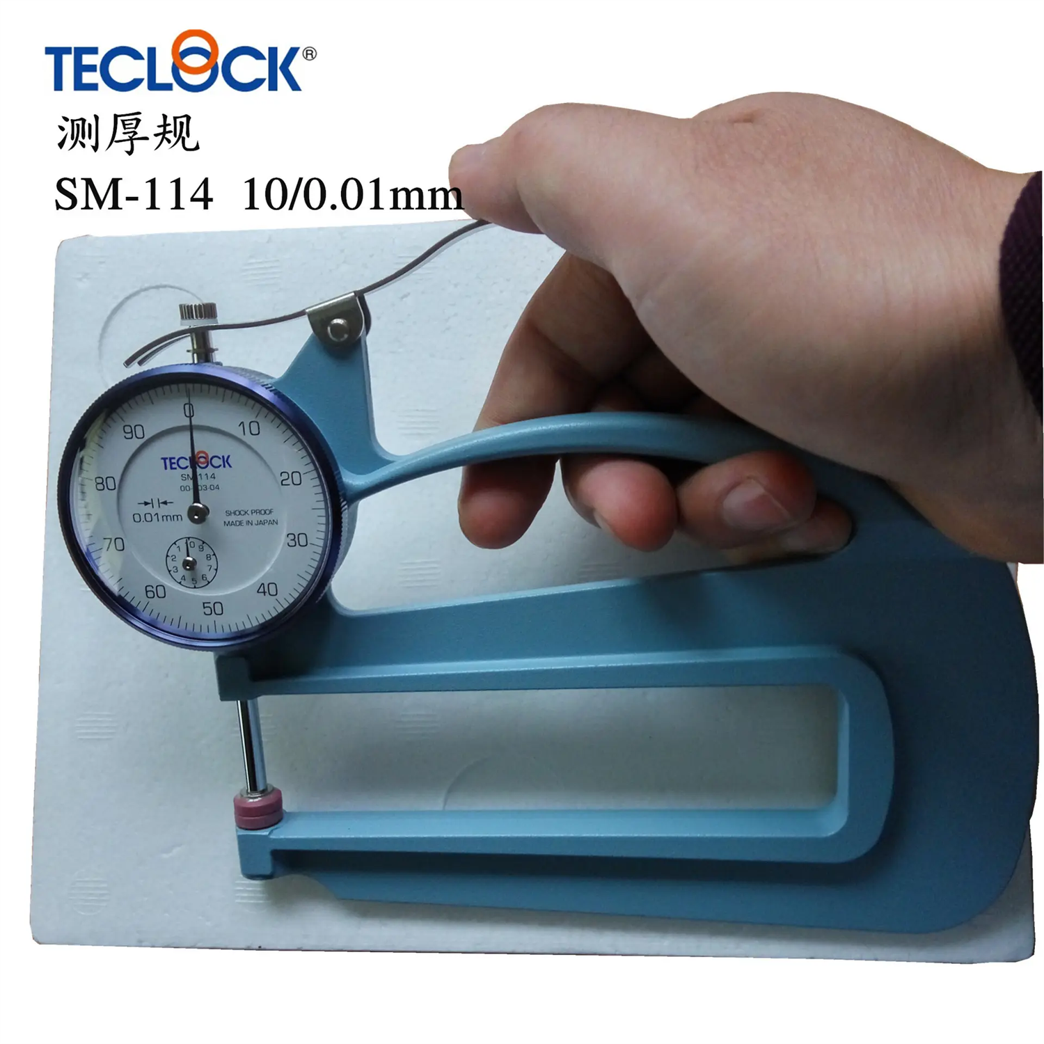 1. 用途: 测厚规主要用于测量纸张、皮革、橡胶、织物及各种*属板材、玻璃板等的厚度。2.sm-114测厚规结构原理: 测厚规是用于测量固定于表架上的指示表测头测量面相对于表架测砧测量面的直线位移量(厚度),并由指示表进行读数的测量器具3. 示值误差的检定:测厚规示值误差的检验是将3级量块置于测厚规的两测量面之间,指示表的指示值与量块尺寸之差即为示值误差。各点示值误差应符合表2规定。该项检验至少应在测量范围内均布的四个位置上进行。推荐检验测厚规示值误差的量块尺寸为2.2, 4.5, 7.7, 10mm。4.sm-114测厚规使用与保养:a、使用时应避免指示表的剧烈冲击,以免影响读数准确。b、使用前应将两测量面擦干净并调表到0位,即可直接测量读取被测工件的实际尺寸。c、测量完后应将两测量面擦净并涂防锈油,再把测厚规放入包装盒中。