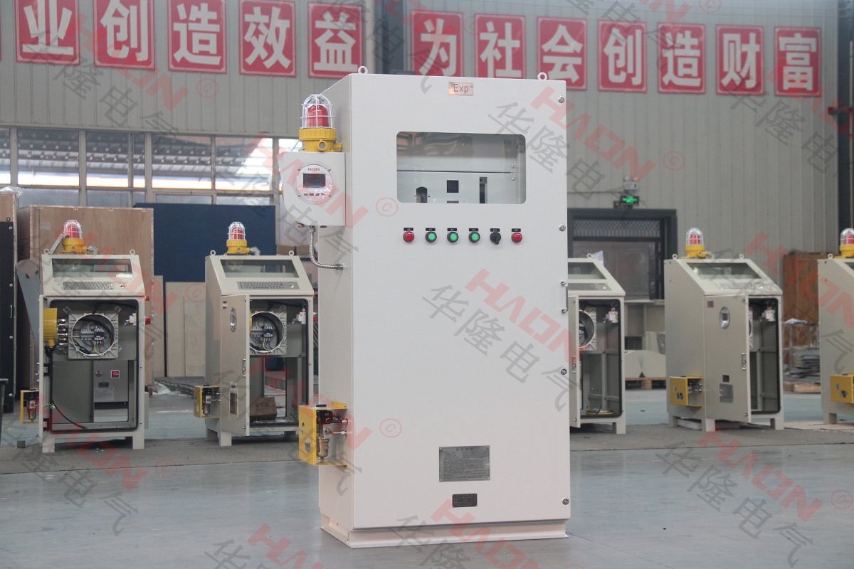 这是华隆电气防爆正压柜厂家最近为客户生产而成的防爆类配电装置,根据用户的使用需求,设计所需的防爆配电箱尺寸、结构及控制单元,壳体材质选用高强度金属材料,经特殊工艺处理,表面喷涂吸附力的塑粉,外形设计美观大方,结构紧凑合理,防爆性能优良。