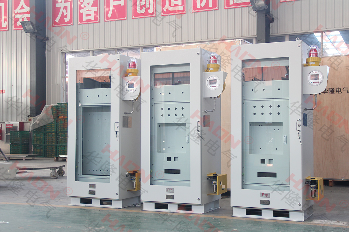 这是华隆不锈钢防爆正压柜生产厂家为客户设计生产的各种类型的防爆配电箱,根据其外形设计可分为单腔和复合型防爆配电箱,安装形式有立式和挂式之分,材质分别采用不锈钢、优质钢板和铸铝合金。通过特殊工艺处理,表面喷涂吸附力的保护塑粉,防爆防腐性能优良。
