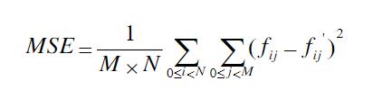 图像质量的客观评价方法是根据人眼的主观视觉系统建立数学模型,并通过具体的公式计算图像的质量。传统的图像质量客观评价方法主要包括均方误差(MSE,mean squared error)和峰值信噪比(PSNR,peak signal to noise rate)。均方误差法首先计算原始图像和失真图像像素差值的均方值,然后通过均方值的大小来确定失真图像的失真程度。计算公式如下: