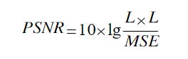 其中 M、N为图像的长和宽,fij表示原始图像的像素值,fij'表示降质后图像的像素值。PSNR作为衡量图像质量的重要指标,基于通信理论而提出,是信号量与噪声强度的比值。由于数字图像都是以离散的数字表示图像的像素,因此采用图像的像素值来代替信号量。具体公式如下: