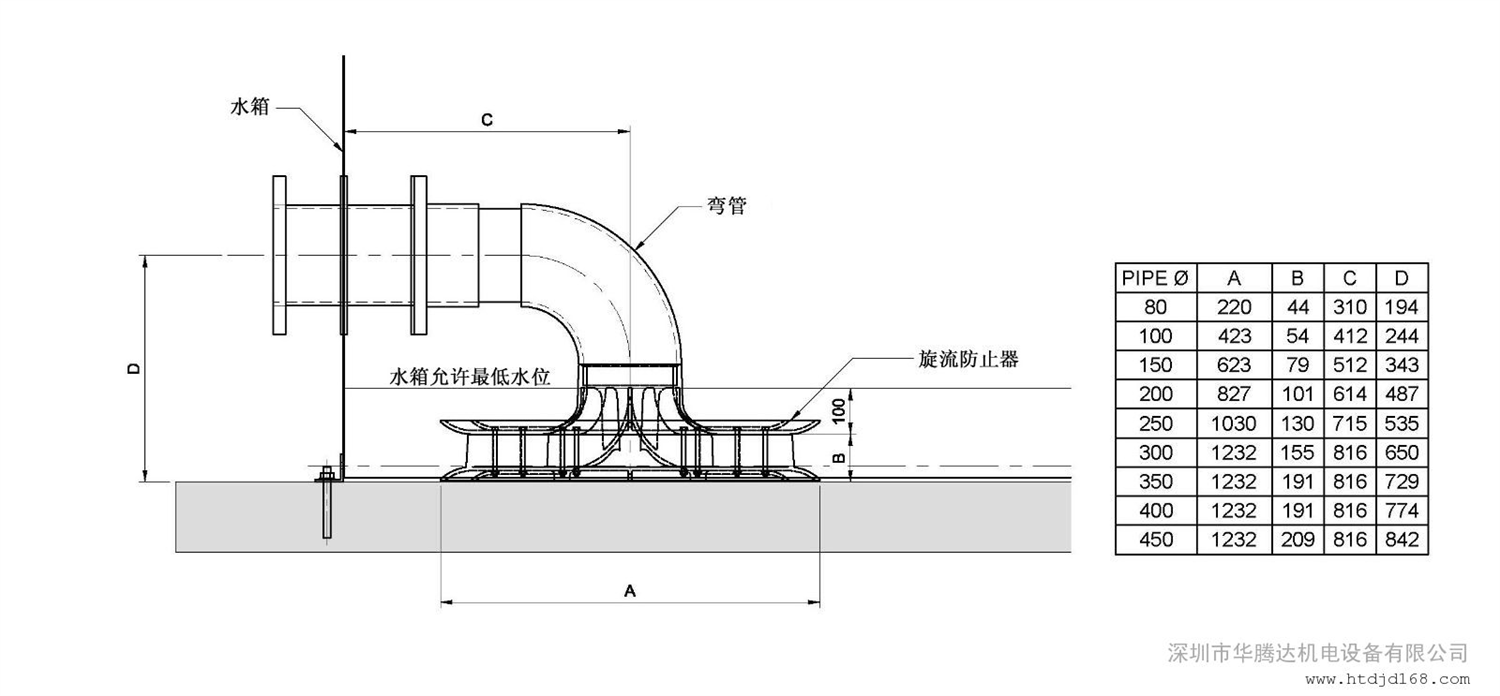 一、不锈钢高效旋流防止器概述:华腾达牌高效能旋流防止器是一种用于防止水箱(池)在输送液体时产生旋流和防止空气进入管道的特殊管件。其作用是安装在水箱(池)水泵吸水管端口上,用来消除水箱(池)内的旋流,以确保水泵能一直全力起动并正常工作,避免空气进入水泵产生气蚀现象,能使水箱(池)里输送液体的液面降到较低液位,以确保达到*大的流量输送。本产品的设计制造严格按照欧盟标准EN12845的要求,且其性能符合GB50974-2014《消防给水及消火栓系统技术规范》的要求。适用于化工、能源、水工程等领域,特别是在消防取水池(箱)中使用,能保证有效容积被全部利用,提高消防水池有效利用率,减少死水区,实现节地要求。救援时,消防用水能得到*大限度的使用。二、不锈钢高效旋流防止器技术特点:1.旋流防止器是按照欧盟标准EN12845的标准设计与制造,*低淹没深度可至100mm而不产生旋流,大大提高了水池的有效利用率。2.有效消除抽吸水过程中水箱(池)产生的旋流。3.防止因旋流夹着空气进入水泵,实现水泵高效能输水,避免水泵产生气蚀现象而被损坏。4.旋流防止器的结构简便而结实,实现经济型安装、免维护。5.旋流防止器的材质是优质奥氏体不锈钢06Cr19Ni10(304),防腐蚀性能强,使用寿命长。6.符合GB/T 17219的卫生要求。7.旋流防止器可加装过滤网。国家规定:GB50974-2014《消防给水及消火栓系统技术规范》中第5.1.12条规定:当消防水泵从消防水箱吸水时,因消防水箱设置吸水井困难,为减少吸水管的保护高度要求吸水管上设置旋流防止器,以提高消防水箱的储水有效量。第5.1.13条规定: 消防水泵吸水口的淹没深度应满足消防水泵在*低水位运行安全的要求,吸水管喇叭口在消防水池*低有效水位下的淹没深度应根据吸水管喇叭口的水流速度和水力条件确定,但不应小于600mm,当采用旋流防止器时,淹没深度不应小于200mm。三、不锈钢高效旋流防止器技术参数:不锈钢高效旋流防止器概述: 旋流防止器是一种用于防止水箱(池)在输送液体时产生旋流和防止空气进入管道的特殊管件。其作用是安装在水箱(池)水泵吸水管端口上,用来消除水箱(池)内的旋流,以确保水泵能一直全力起动并正常工作,避免空气进入水泵产生气蚀现象,能使水箱(池)里输送液体的液面降到较低液位,以确保达到*大的流量输送。本产品的设计制造严格按照欧盟标准EN12845的要求,且其性能符合GB50974-2014《消防给水及消火栓系统技术规范》的要求。适用于化工、能源、水工程等领域,特别是在消防取水池(箱)中使用,能保证有效容积被全部利用,提高消防水池有效利用率,减少死水区,实现节地要求。救援时,消防用水能得到*大限度的使用。