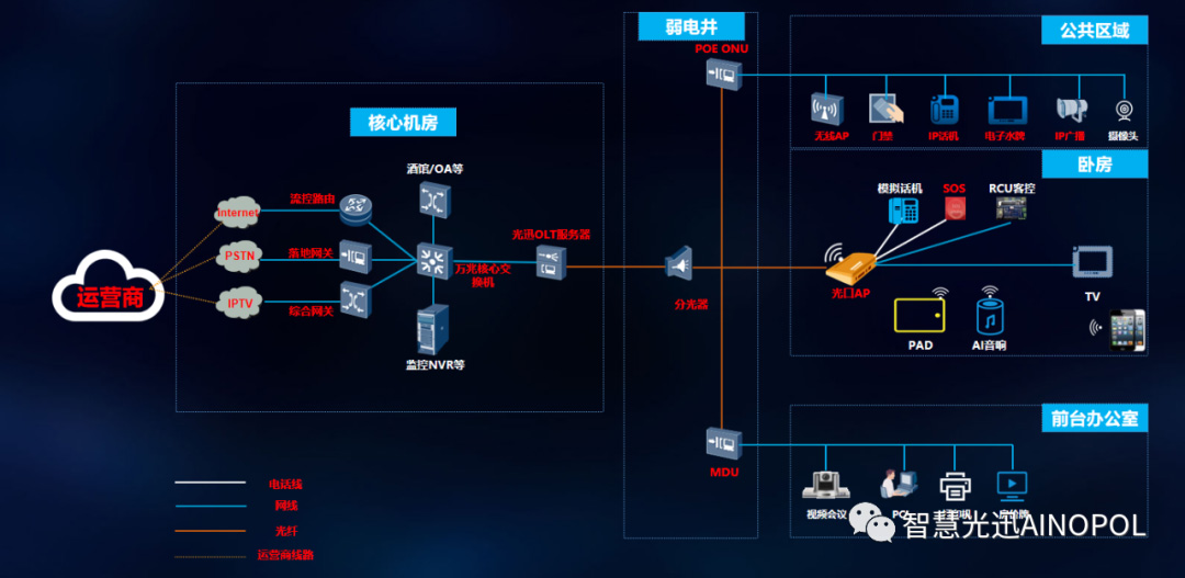 01 POL实现客房三网合一,并支持灵活配置带宽,满足网络需求;
