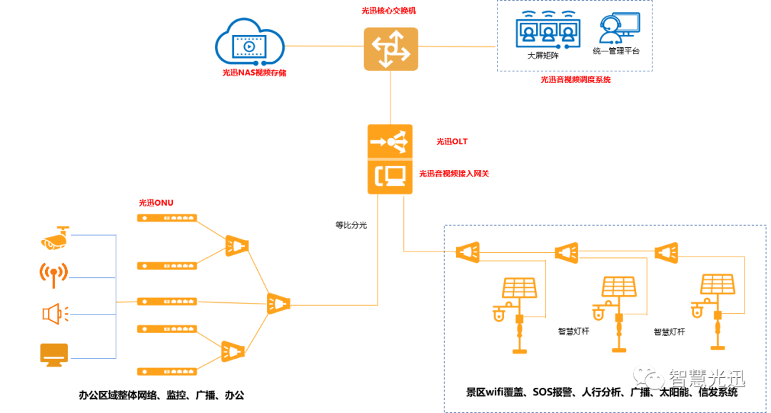 (1)采用智慧光迅光纤部署到点位的方案进行整体数据传输。