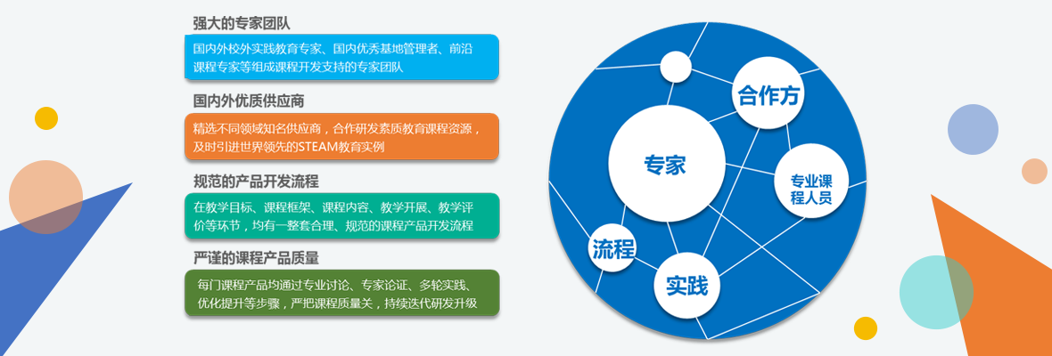 依托经验丰富的专业STEAM教育产品开发及服务团队和逐渐成熟的核心素养教育联盟(业界资源与学界资源),面向K12各级各类用户的课程产品实施,提供完善的保障服务。