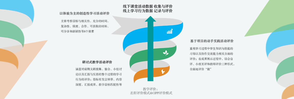 教学评价包括形成性和总结性评价,通过线上与线下结合的形式,针对“学”“做”“创”三种教学活动进行过程性与结果性数据收集,设计多维度评价内容、多元化评价主体和多样化评价方法与工具。评价方法主要有双向互评、量规评价与汇报展示等。