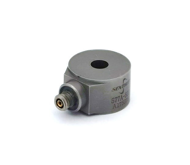 (1、内部屏蔽型 IEPE 加速度传感器 577A,该振动传感器是一款可同时测量振动和冲击的轻量化IEPE加速度传感器,其特点是采用环形剪切模式的陶瓷晶体为敏感元件,具有长时间保持输出稳定的特性;广泛应用于旋转设备的振动、冲击测试;特别适合应用于电磁环境比较复杂的发动机或变速箱健康监测系统(HUMS)。在HUMS系统应用具备了相应的应用特点:•超高频率响应 •外壳隔离 •通孔安装 •出线方向灵活 •粘合剂或螺丝安装 •环形剪切模式 •宽操作温度范围