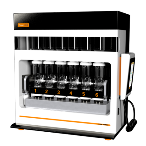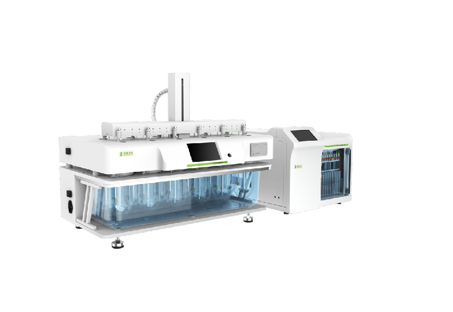 1、清洗仪器蒸馏系统:将空消化管放置在仪器上,按照硼酸20ml,稀释水100ml,碱液0ml,蒸馏5min设置参数,蒸馏后将废液倒出,重复进行2次以上蒸馏。