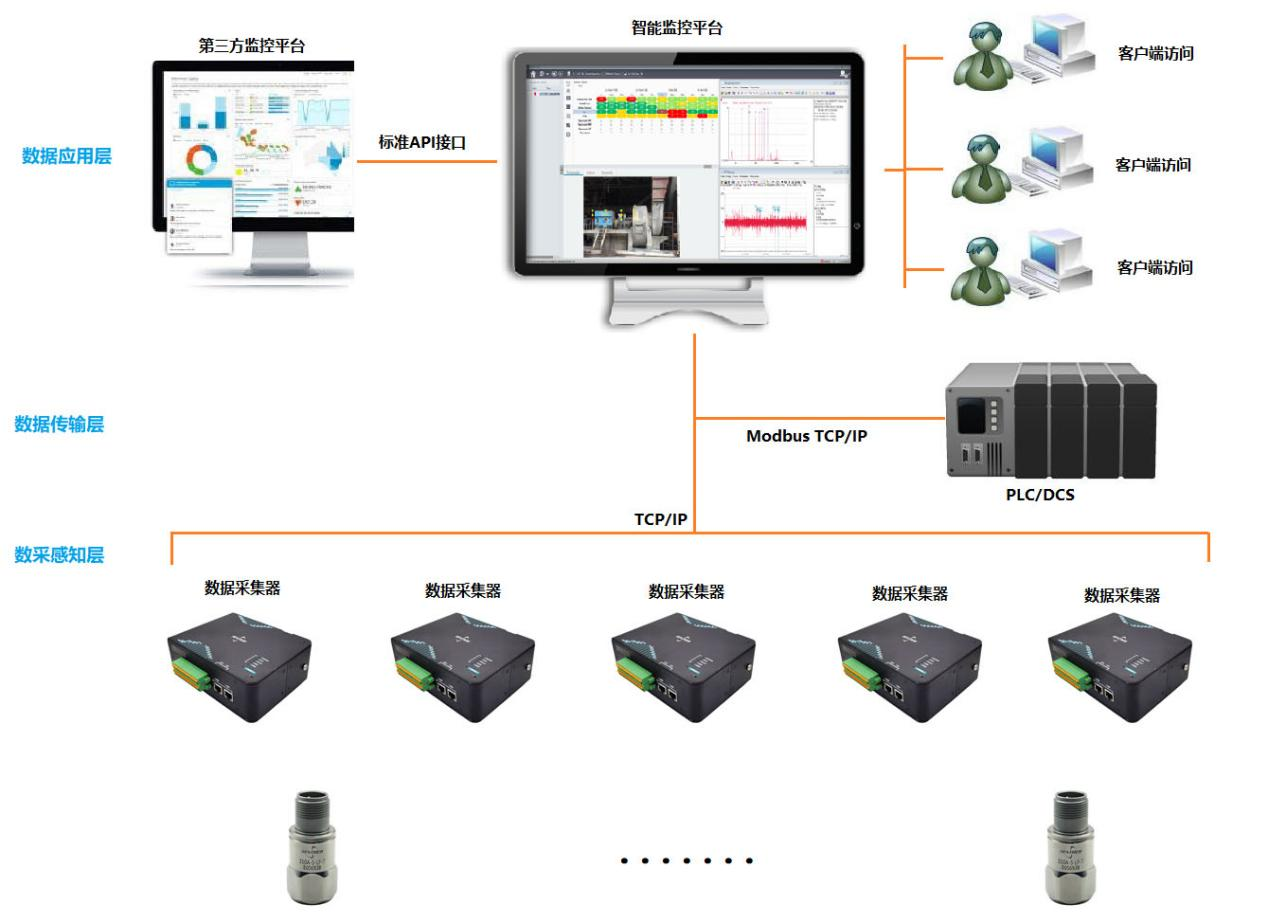 通过让振动波形变得简单易懂的边缘计算网关将有效的采集运算与数据化处理,对旋转、滑动等轴承设备进行实时在线的运行状态监测和智能诊断,如油气田处理厂、联合站、油系统、水系统、电力系统、气系统的压缩机组群以及输油泵组群、注水泵组群等设备,这些动力设备作为关键设备,一旦发生意外故障停机,势必会造成整个生产线的运行,带来巨大的经济损失,甚至会影响整个工厂的正常生产。因此,通过对这些关键设备进行边缘端的快速在线运算与分析处理,并快速反馈有效数据信息,与远端数据中心的状态监控和智能诊断系统相结合,能够实时监控这些设备在运行过程中的各项指标,如振动指标、温度指标、轴承指标和报警信息等指标,从而有效地避免设备意外停机,真正实现早发现,早预防和早维护的智能运维目的。