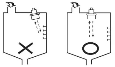4)超声波收发传感面应尽量避免靠近容器侧壁。