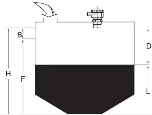 对于15米、20米、30米和40米量程的物位计,接管长度应不大于20cm,选择DN200以上的法兰口。